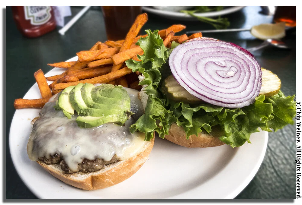 Assembling the burger myself after shooting it open faced gave me options for publication and allowed me to place the veggies and fries for the best photo.