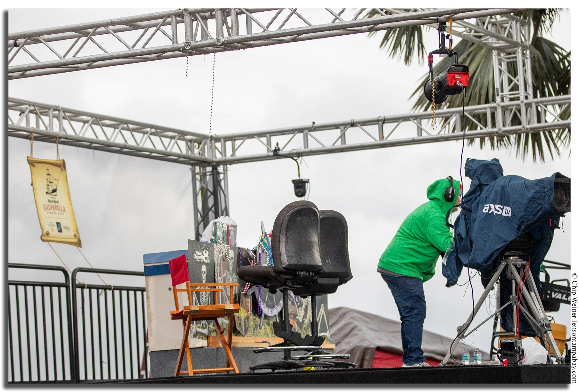 Most revelers hung tough—often fortified by high-proof liquid courage—stacked ten people deep along the route, howling for beads and waving flags as cannons thundered, floats crept by, and krewes did what krewes do best. Not everyone was built for it, though. News Channel 8’s anchors, for one, bailed on their usual perch above the chaos after wind took their cover, most likely for a warmer, drier place to watch.