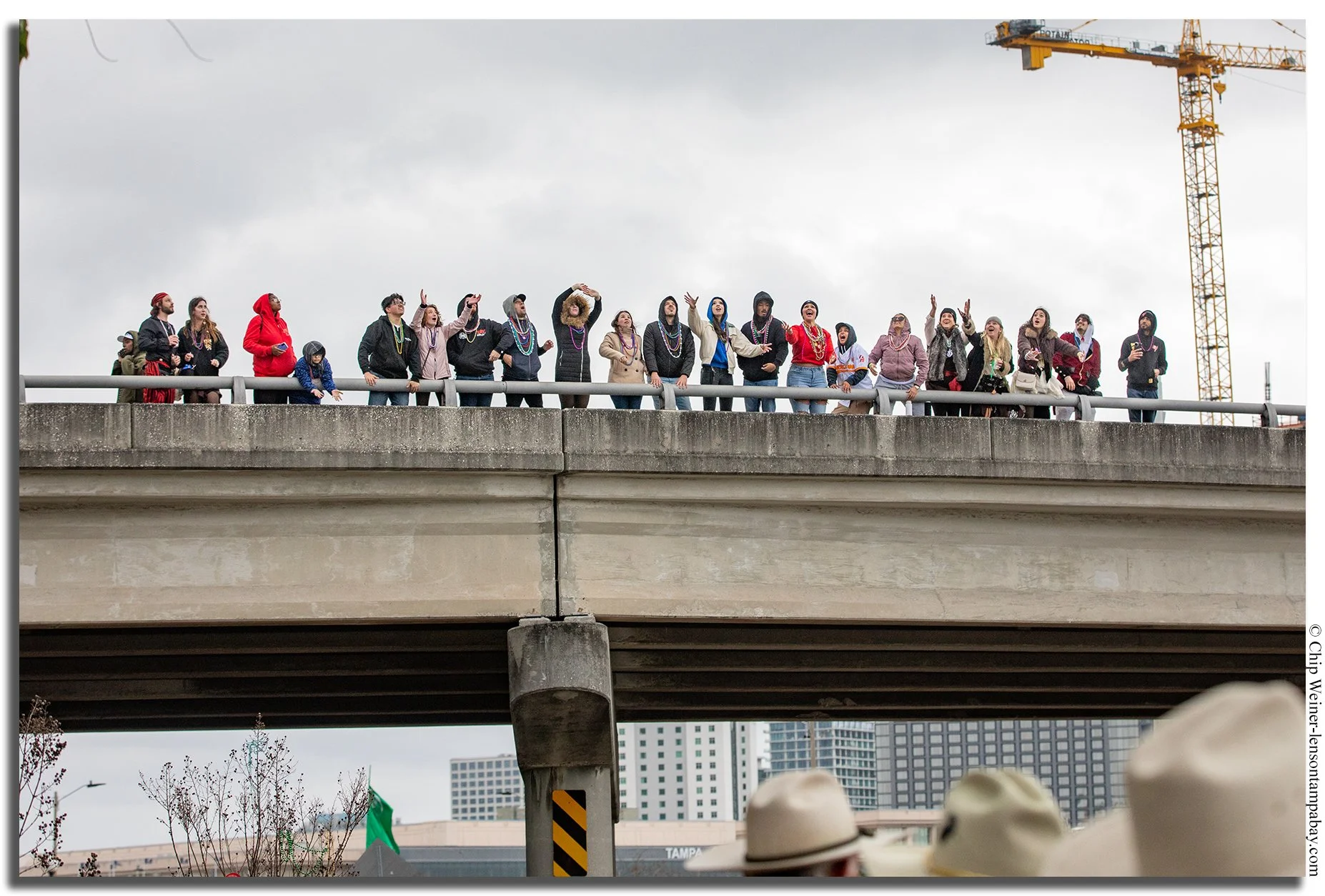 Sometimes the best seats aren't seats. These party people stood on the Davis Island Bridge, towering over Bayshore for the best view.