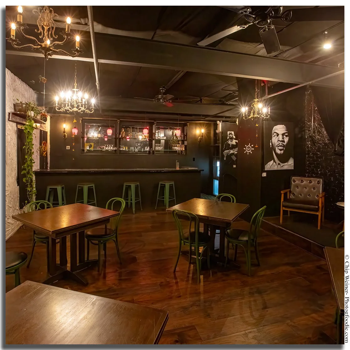 The marketing model here is curious. The restaurant’s website is little more than a digital calling card—a minimalist splash page with no menu, links, or “about us” section, just an explanation of the symbols in their logo. The only interactive feature is a link to sign up for their email newsletter. Most of the available info about Lara lives on Instagram, where they post updates about events and collaborations. I could not find an updated menu anywhere, on social media or otherwise. (But you can see one below.) Yelp’s versions were all old. During my first visit, Chris, the bomb bartender, mentioned a pop-up scheduled for the following weekend. When I went online for details, there was nothing—no post, no page, no mention. Maybe that’s why the newsletter exists: a modern-day whisper network for those in the know. After all, there is a speakeasy.